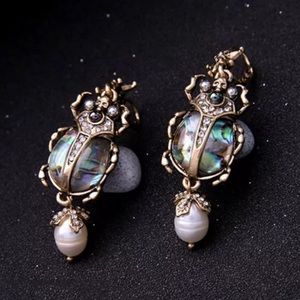 Egyptian Ancient Scarab Beetle Pearl earrings necklace bracelet jewelry accessories Betsy Johnson Alexander McQueen Nasty Gal Zara Free People