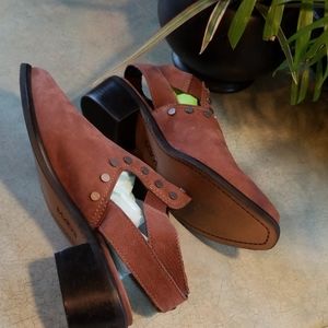 COOL M4DE SUEDE STUDDED SHOES W/DOUBLE STRAP HEELS