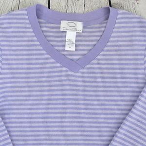 Thermal long sleeve Lilac & light lilac horizontal striped shirt, v neck with waffle knit thermal fabric,
