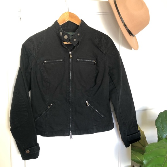 LRL Ralph Lauren Moto Jacket Cropped Black Denim M