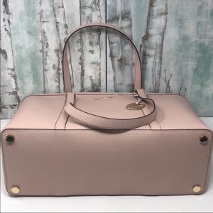 Michael Kors Large Sady laptop bag gold tone hardware Double top handles with approx 11" drop, Zip top closure