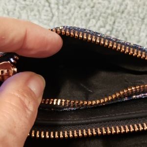 Bought this in Washington DC study navy blue leather with a gorgeous sparkle front double zipper perfect condition.