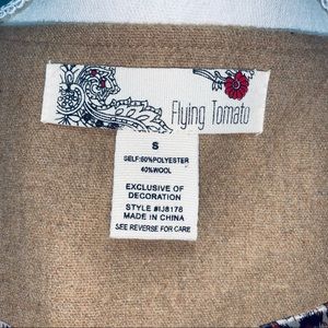 Flying Tomato Wool blend cape trench coat sz S. Excellent condition! Like new! No wear! Beautiful camel tan color. Perfect for fall! Has beautiful button details and a belted waist. You can create more of a cape look by unbuttoning the sleeves.