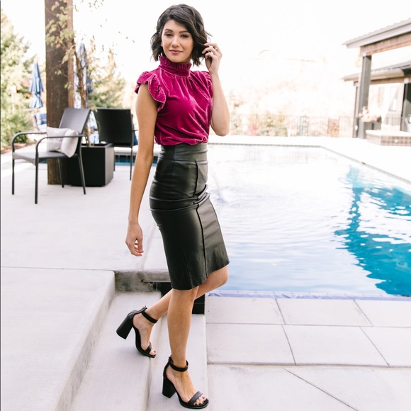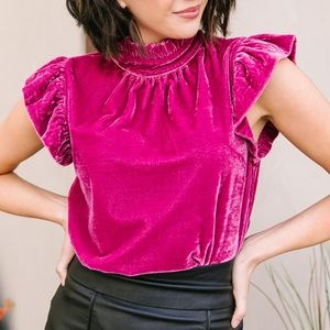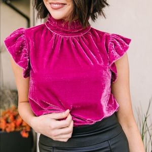 Fuchsia Velvet Mock Neck Top