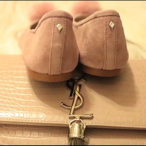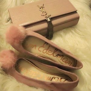 Revamping casual wear with a glamorous kick, Sam Edelman eases into a fur trend with these Farina ballerina flats. Rendered in supple suede, this pair is topped with faux fur pompoms for a whimsical twist.
