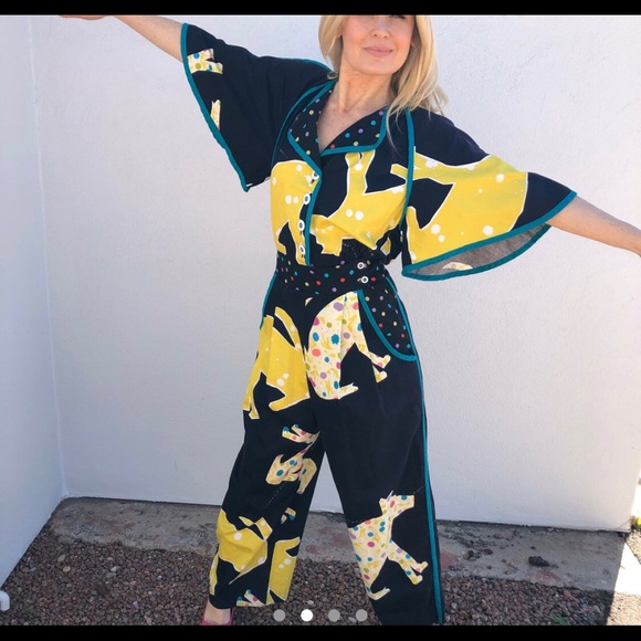 Vintage Jeanne Marc animal print polkadot jumpsuit🖤💛🖤💛 Such a Fun piece!!🥳⭐️