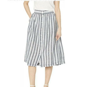 Max Studio Button Front Linen Blend Stripe Skirt XL
