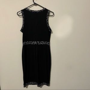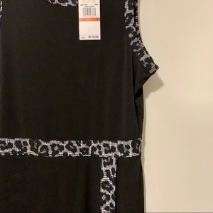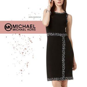 Chic animal-print trim outlines this sleeveless faux-wrap dress from Michael Kors.