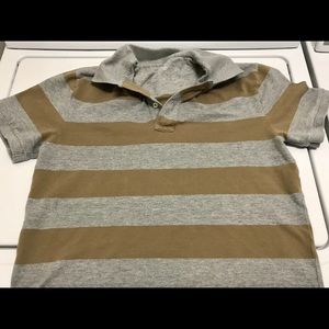 Medium men’s polo shirt! Only worn once or twice! Basically a brand new shirt! LIKE NEW CONDITION!!! Gray and Brown striped design! Made in Cambodia! NICE AND SOFT FABRIC!!!!
