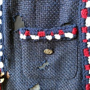 CHANEL dark blue, red and white striped mesh cutout coat / cardigan. Spring 2011 collection.