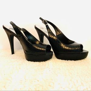 Fun and sexy sling back platform heels. Joeys. Size 7m. Heels approx 5.5 inch toe approx 1.5 inch. Surprisingly confortable.