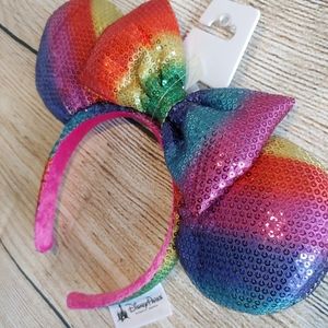 Disney Parks Rainbow Sequins Minnie Ears with Bow