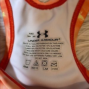 Orange tie-dye design with extra elastic around the band. Pink ombré striped design. Both size medium, no padding