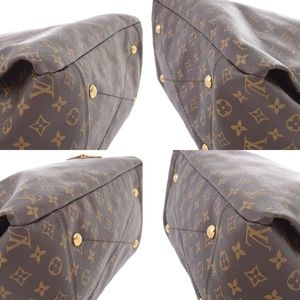 This large tote is crafted of durable Louis Vuitton monogram coated toile canvas. This shoulder bag features a natural vachetta cowhide rolled leather handle with a sleek braided detail. The top opens to an ivory microfiber interior with a large zipper pocket and double sided pockets. This is the ideal bag for everyday necessities with the luxury and style from Louis Vuitton! leather aging, pen stains inside, wear on handle.