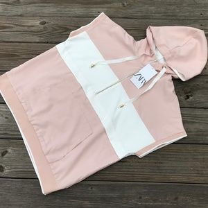 Zara Women Jacket Pink White Tracksuit Sleeve Less Pouch Pocket Hood Jacket Size L
