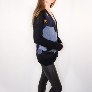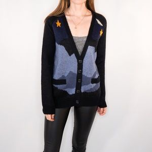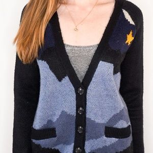 Description: LA : HEARTS Starry Night Blue Knit Botton Sweater. Size Small.