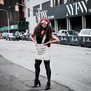 This skirt was a knock out at NYFW! It has that tweed material giving you some of a Chanel-esque vibe! Perfect with leggings or in the spring by itself!