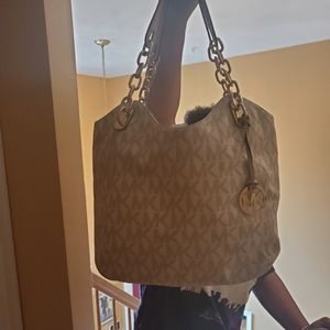 Michael Kors handbag. Excellent condition. Snap closure. Chain link handles. Creme color. 14"W x 12"H PRICE IS FIRM.