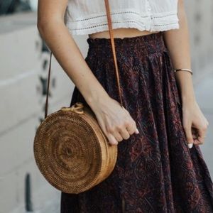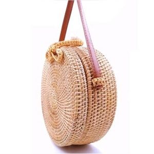 Boho trendy handwoven straw rattan round circle crossbody (or over the shoulder) bag. Handmade so each bag has a little bit of variation.