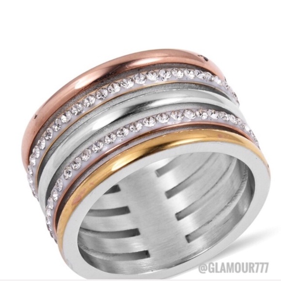 Crystal, Gold Plated Stainless Steel Ring