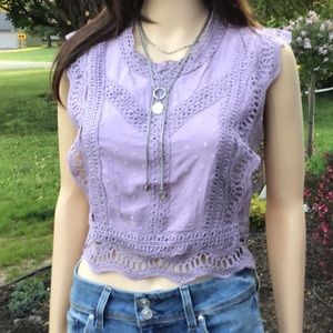 GORGEOUS VIOLET CROP TOP WITH EMBROIDERED LACE DETAILS~