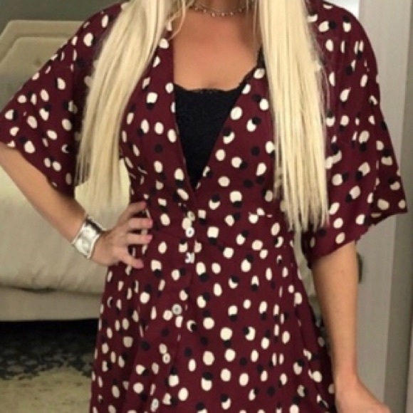 Beautiful Burgundy dress with white and black dots