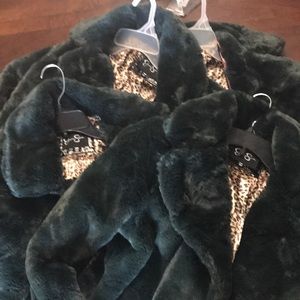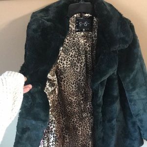 Jessica Simpson Faux Fur Leopard lined jacked in forest green.