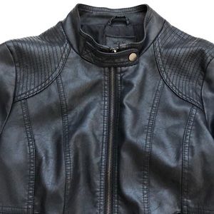 • Tailored, fitted faux leather Moto jacket