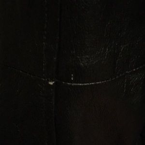 Nice mid-length leather jacket. Zip-out liner. Some minor issues, but good for age. One noted near right pocket, and on seam of right arm.