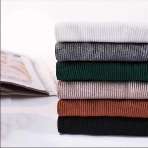Burnt Orange Mock Neck Ribbed Turtleneck Sweater
