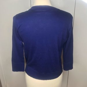 Kate spade three-quarter length sleeve cardigan sweater in navy with white embellishments, beads. In excellent used condition. Approximate measurements Pitt to pit 17 inches collar to hem 20 inches. Size small.