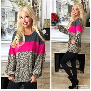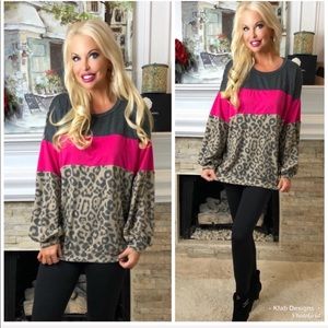 Color Block Hot Pink Leopard Print Super Soft Top!