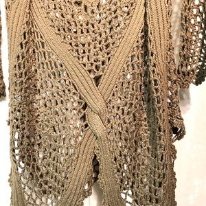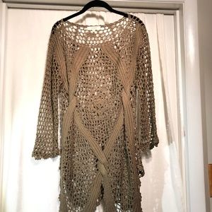 Amazing details in this UMGEE USA Crochet Long Sleeve Top! It's really well done mixture of crochet and knit! A real head turner! Color is Olive. Size small 75% Cotton 25% Polyester. Measurements are approximate and laying Flat. Garmet has plenty of stretch. Shoulder to shoulder 21 1/2". Waist 20 1/4, Arm pit to arm pit 21". Sleeve Length 20 1/2" and Length front top to bottom 32 1/2".