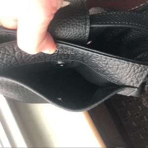 Gorgeous 9” leather bucket bag with inside zipped and pocketed areas , outside pocket as well for great organization - approximately 30” top of shoulder strap to base of purse with several options for shorter or longer- perfection!