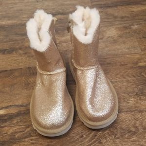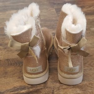 Twinkling outside, toasty inside: the UGG® Classic Mini Bow Cosmos boots' glittery chunky shape is lined with genuine sheepskin and finished with satin bows in the back.