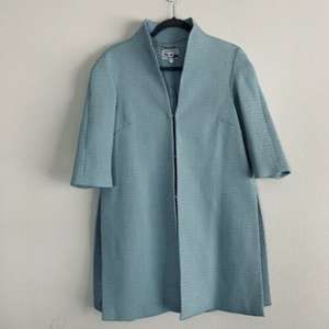 Description: Stand-up collar 3/4 length sleeves Front hook-and-eye closure Side vents Lined