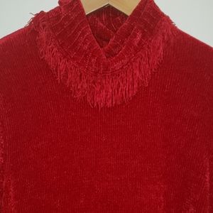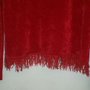 This sweater is preluv by Rafaella with turtle neck & tassel collar & hem
