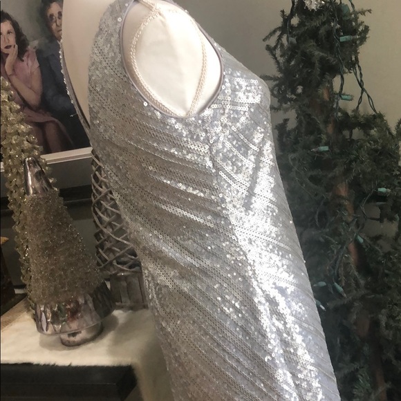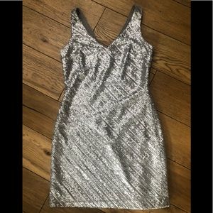Banana Republic Sequin V-Neck Shift Dress in Silver - Size 2