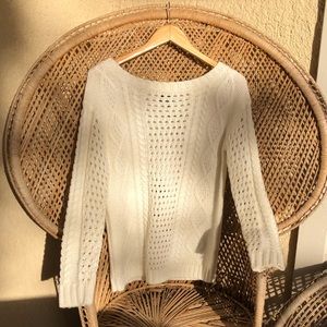 🤍🦋🤍 Comfy Chunky Cableknit Sweater by Frenchi. Size M, also fits a S a little oversized. Slightly off-shoulder chunky knit sweater in great condition. Lightly worn & well cared for, may have light pilling. Great staple off white color that looks great w everything. 100% acrylic. Free People style. Soft, comfy & chic.