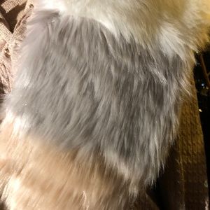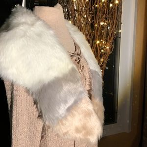 NWT Scarf that will take any top from ordinary to extraordinary! In shades of white, blush and grey color black. Faux Fur, contoured to fit the neck line and beautifully lined in satin. Has hook closure. (sweater is sold separately).