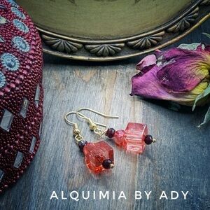 GOLD + RED TURQUOISE + CRYSTAL Victorian long earrings