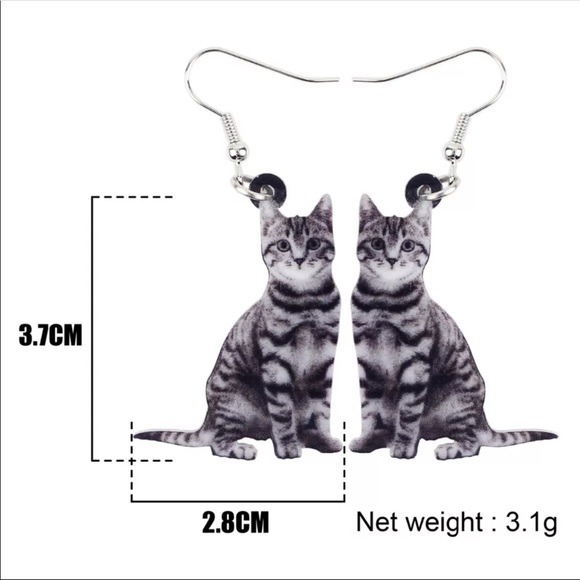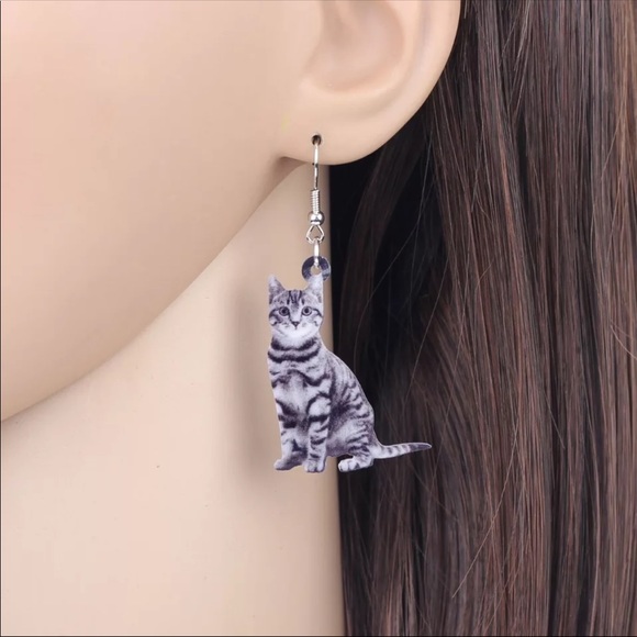 Grey Kitty Cat With Black Stripes Acrylic Earrings