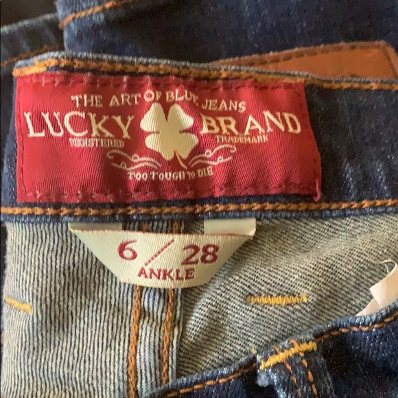 Size 6 slim cut straight leg. Great jeans that use to fit me great🙀 so flattering on. Will send measurement later. Ask any question. Dark wash with slight fase on front. Gently used as i had 3 pairs of Lucky to alternate.