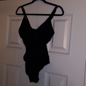 A slimming, wrap-front panel and scoopback design add allure to this classic one-piece swimsuit. NWOT- pantyliner is still attached.
