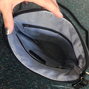 This beautiful adjustable strap purse with tasseled zippers on the front features two pockets on the inside and a zippered pocket on the back. The lining on the inside of the purse features a classic striped print. It is the perfect size to carry all your essentials. It is in NWT with no holes, rips, or stains. Measurements are shown in the pictures. Bundle with other items from my closet for the best deal!