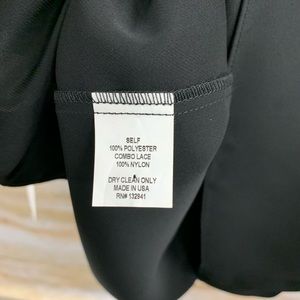 Romantic Swiss dot lace top sleeveless with key hole neck opening. Small ruffles. Portrait collar influences. Easy to wear with skirts or jeans. Dry clean only. Polyester.