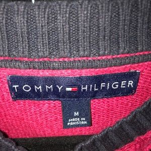 Thick and heavy. Has a second layer of collar. Vintage Red and black Tommy Hilfiger sweater size: medium, great condition