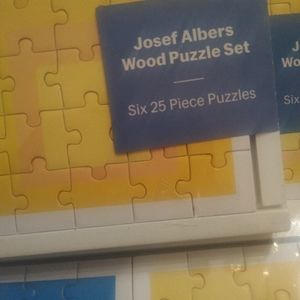 A great activity while socializing around the coffee table, the MoMA Josef Albers Wood Puzzle Set by Galison belongs alongside your favorite art books. Wood puzzle pieces and box feature the work of renowned artist and educator Josef Albers in partnership with the Museum of Modern Art.