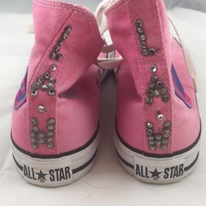 PINK AND WHITE W/personalized L.A.W. in REAL Swarovski Crystals! Also iron on LOVE patches on the sides! I personally did the add ons 😊
