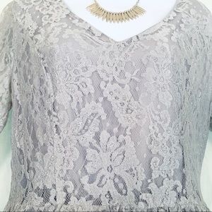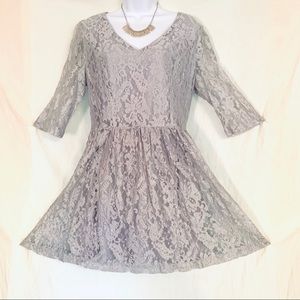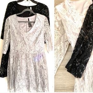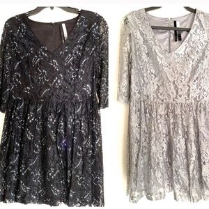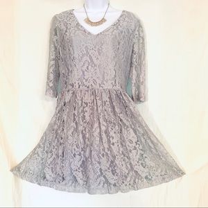 Gorgeous mini lacy/shimmering mid sleeve dress. If you have an edge this dress is really cute with combat boots. Dress up or down. Length 33in/edge of shoulder to shoulder approx 18 inch. Like new, worn once.